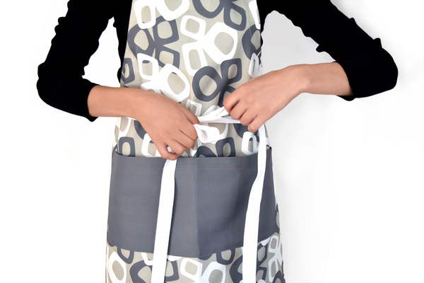 Made here in the United States, our fabric is printed with non-toxic, eco-friendly, water based inks, and each apron is individually cut and sewn by hand in New England.