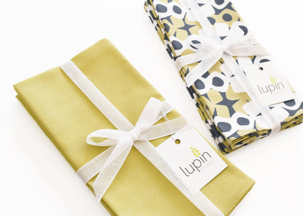 Whether a unique gift for a friend or a modern addition to your own table, our patterned napkins add color and warmth to any table setting. Our solid color napkins coordinate beautifully with our table runners, and packaged with white, open-weave ribbon from Italy, they make a perfect wedding gift.